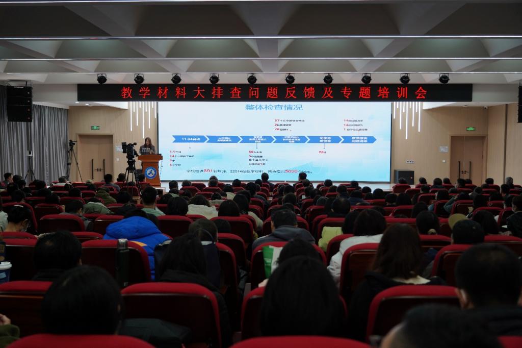 为进一步落实《辽宁科技学院本科教学工作审核评估方案》,高质量完成审核评估攻坚阶段重点任务,进一步提升我校教学质量与教学管理水平,发挥特色、补齐短板,全力备战2025年教育教学审核评估,2024年12月18日下午,学校召开审核评估教学材料大排查反馈培训会,此次会议采用现场会议与线上直播相结合的方式,安排了数字化实训基地主会场、学术报告厅分会场等3个会场。校领导、评建办公室、教务处、督导组全体成员、二级学院领导班子及全体教师共计694人参加会议。副校长罗旭东主持会议。