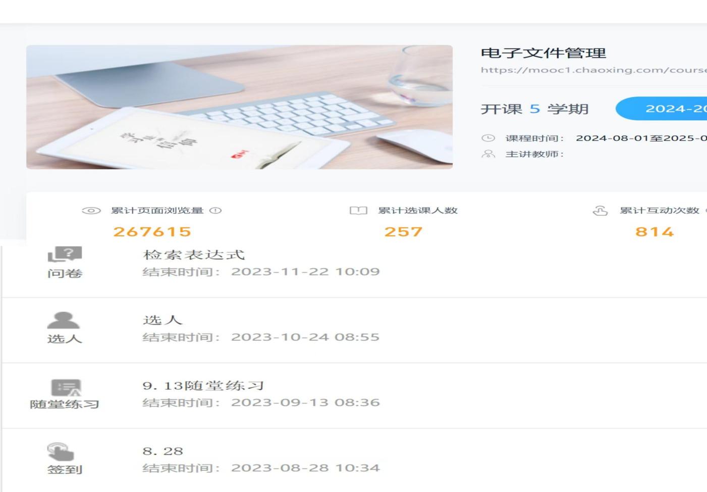 第二阶段是线上线下混合授课阶段(2012年至2018年)。2012年开始在学校的网络教学平台上建课,逐渐丰富教学内容及教学活动,网络教学资源日益丰富。讨论、作业、测验等基本的教学辅助活动都已开展。