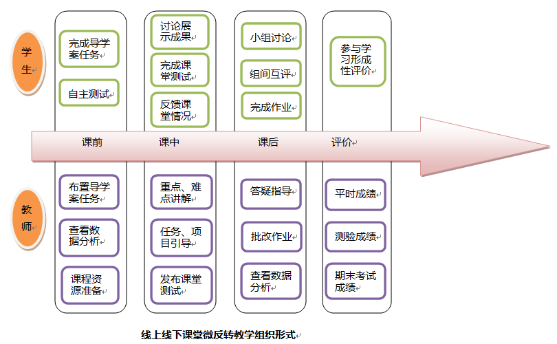 1.教学模式的创新——“三环五步”微翻转方式组织教学。“三环”指课前、课中、课后三个环节。“五步”指教学流程分为发布导学任务、自主测试、成果展示、课堂反馈、交流评价五个步骤。实现“以学生为中心”的线上、线下混合式教学,提高教学效果。