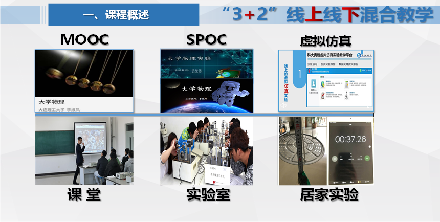 2018年开始在超星自建《大学物理实验》、《大学物理B》SPOC,经过了4个学期使用,在使用过程中不断进行改进、更新、迭代,最终形成《大学物理3+2线上线下混合教学模式》